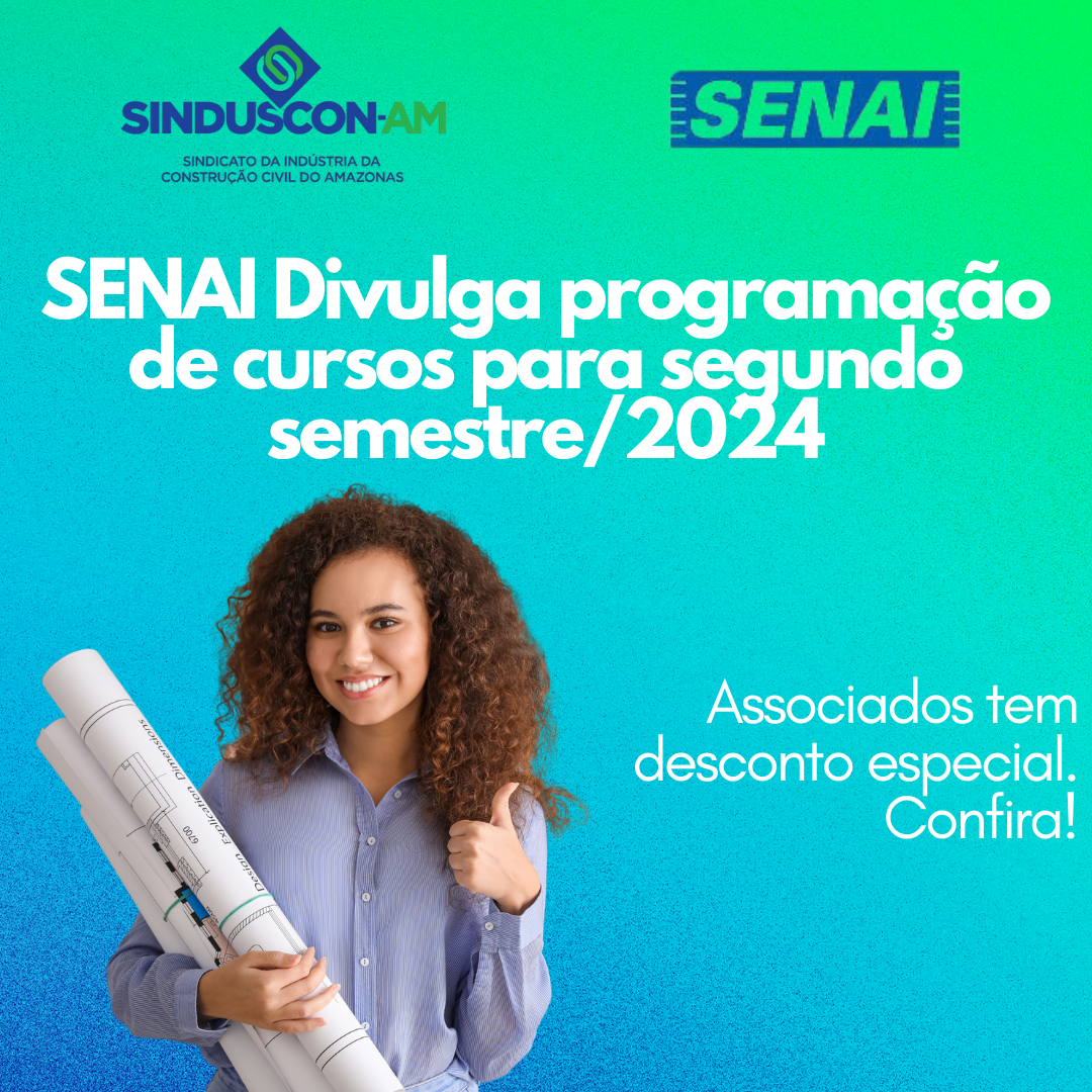 Escola SENAI Demóstenes Travessa divulga o calendário de cursos para o segundo semestre de 2024 e anuncia descontos exclusivos para associados do Sindicato da Indústria da Construção Civil do Amazonas (Sinduscon-AM). Esses benefícios visam fomentar a capacitação profissional na área da construção civil, com descontos que chegam a 30% para empresas associadas.